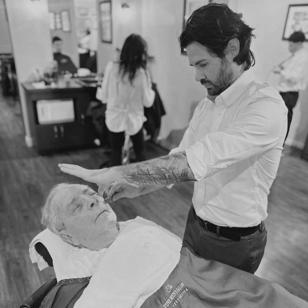 shave prep, aromatic hot towel, hot foam or shave oil, precision straight edge shave with a cool smooth finish - so relaxing and touchable! 55